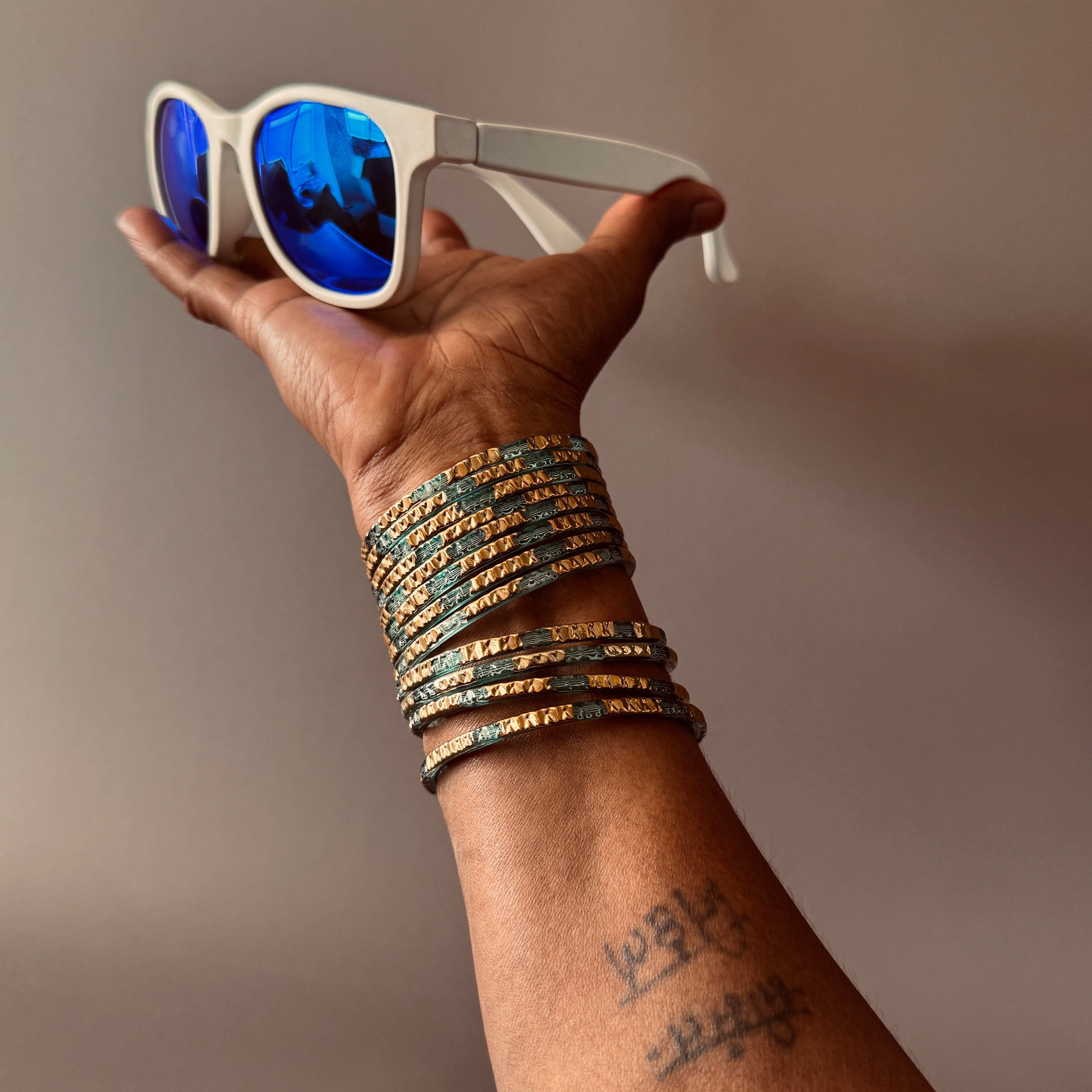 A QR Code that tells you the impact story of these glasses where the waste came from, which former waste-pickers worked on it, and how their lives have improved.
